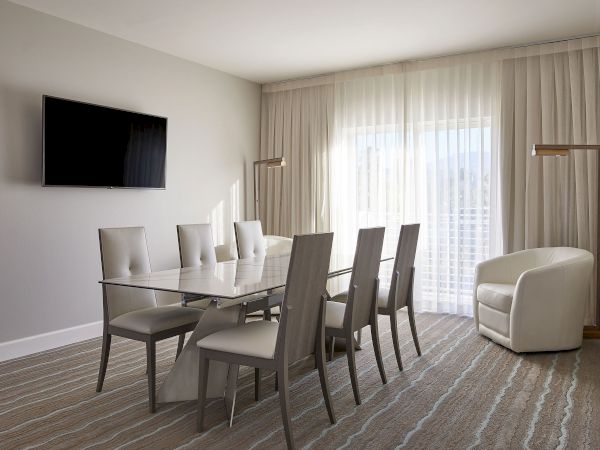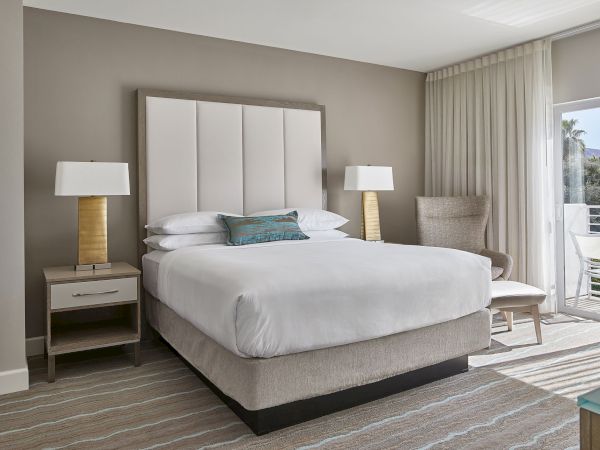 Elevate your stay in Palm Desert with our thoughtfully designed accommodations. Choose from our well-appointed guest rooms or indulge in one of nine specialty suites, each crafted for a unique experience. Whether you're celebrating with friends, enjoying a romantic getaway, or seeking spa-like relaxation, Hotel Paseo offers the perfect retreat. Private balconies in nearly every room and suite showcase breathtaking views of the San Jacinto Mountains and a lush valley of palm trees, making your stay truly unforgettable.